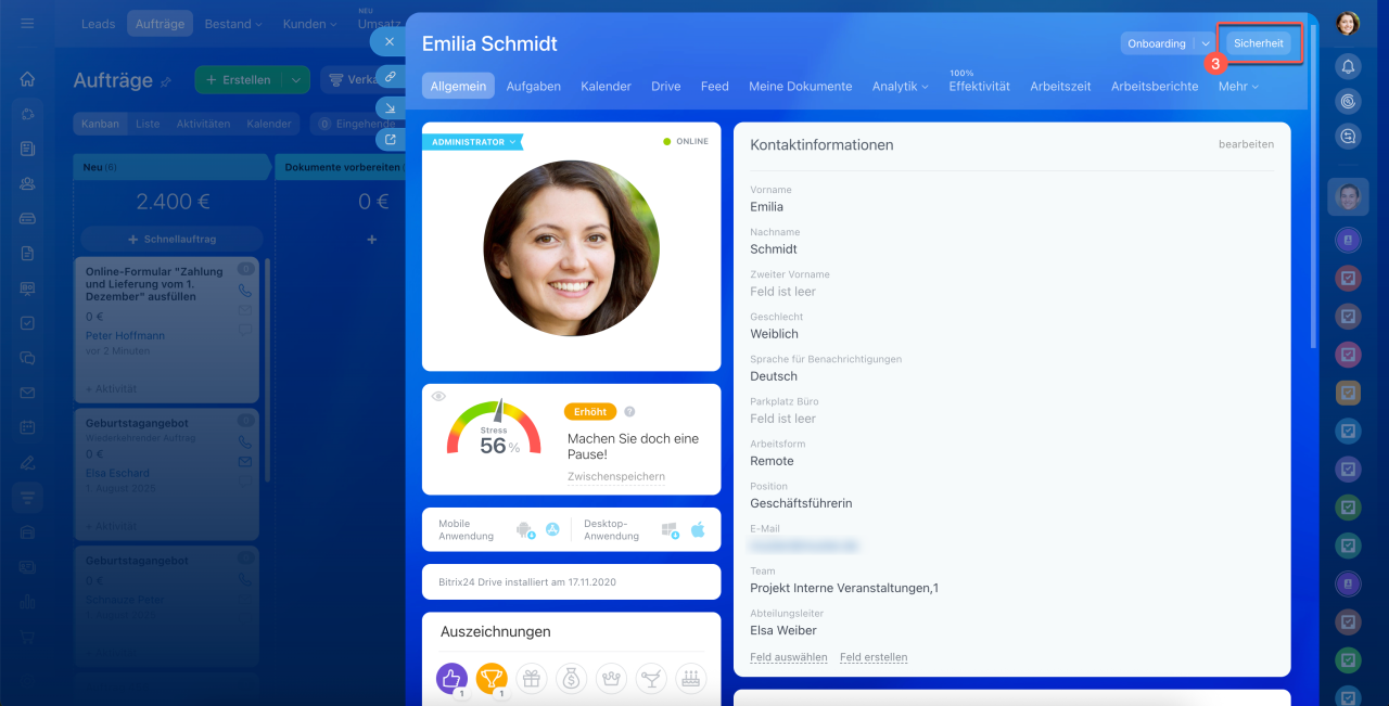 - Wenn in Ihrem Bitrix24 die Zwei-Faktor-Authentifizierung aktiviert ist, ist die Verwendung von Anwendungspasswörtern obligatorisch.
