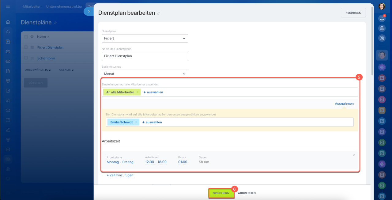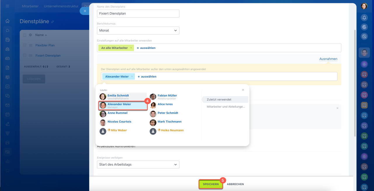 4–5. Fügen Sie die gewünschten Mitarbeiter zur Liste hinzu und speichern Sie die Änderungen.