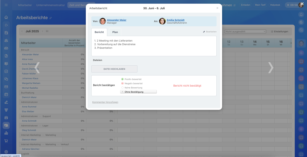 Arbeitsberichte in Bitrix24