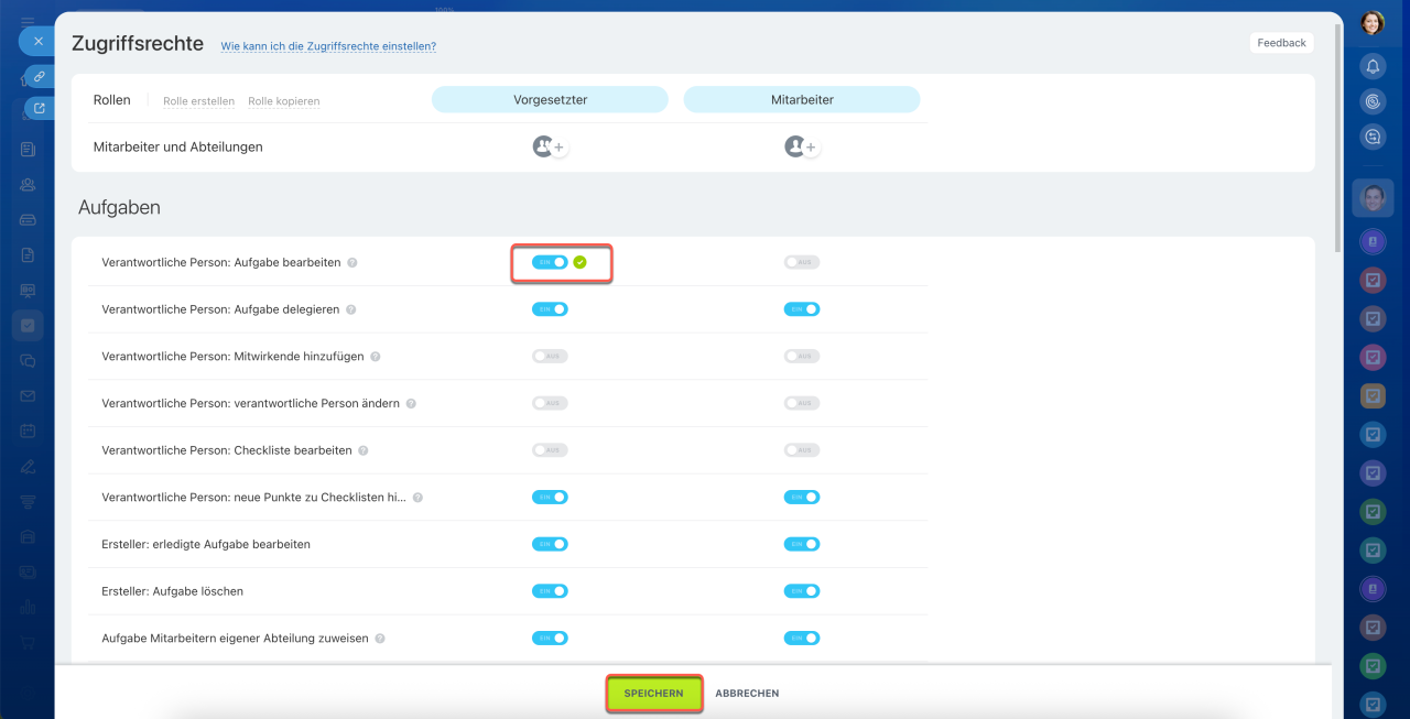 Aufgaben in Projekten: Zugriffsrechte einstellen