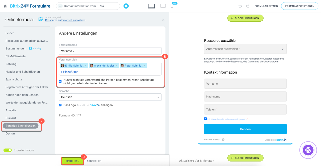 Nach dem Speichern wird Bitrix24 die Anfragen gemäß den festgelegten Regeln automatisch verteilen.