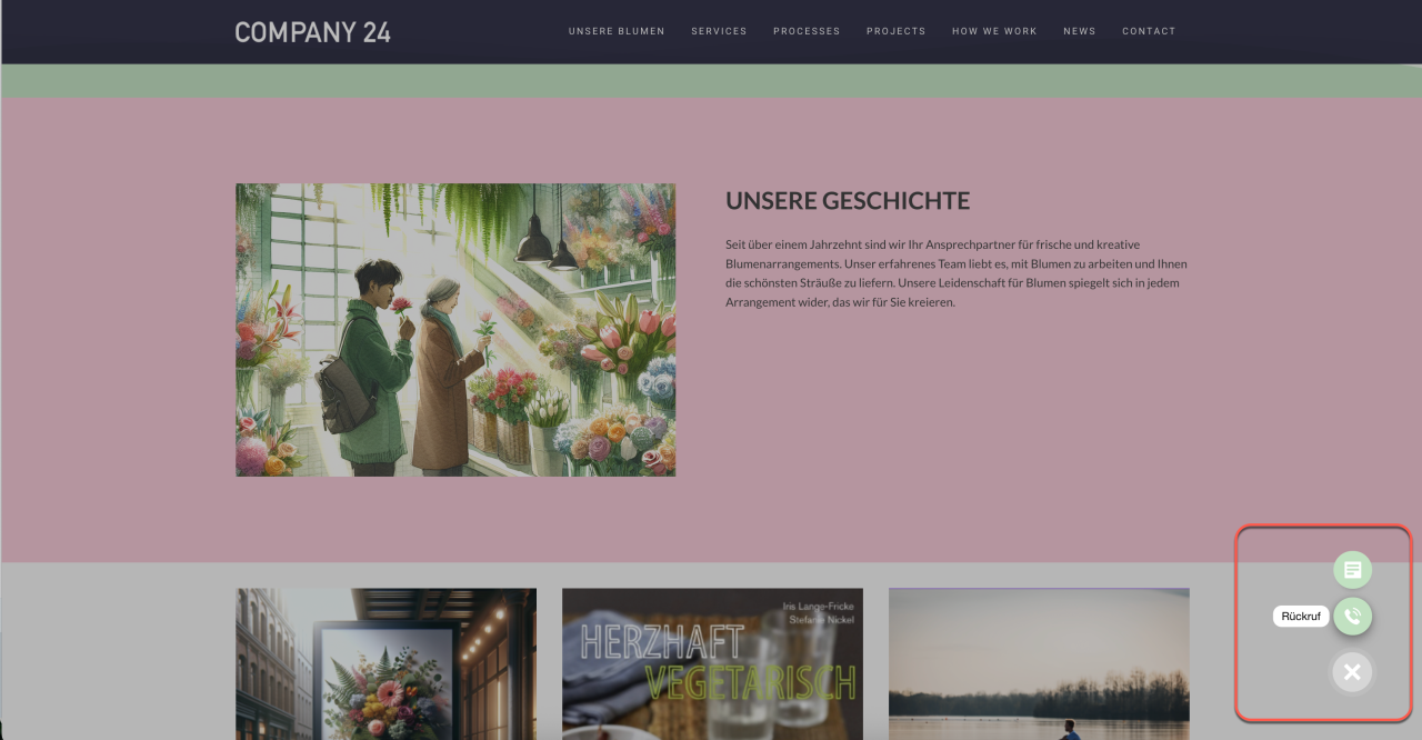Im Website-Widget: Das Rückruf-Formular wird als Widget in Ihre Website eingebunden und öffnet sich, sobald Besucher auf das entsprechende Symbol klicken.