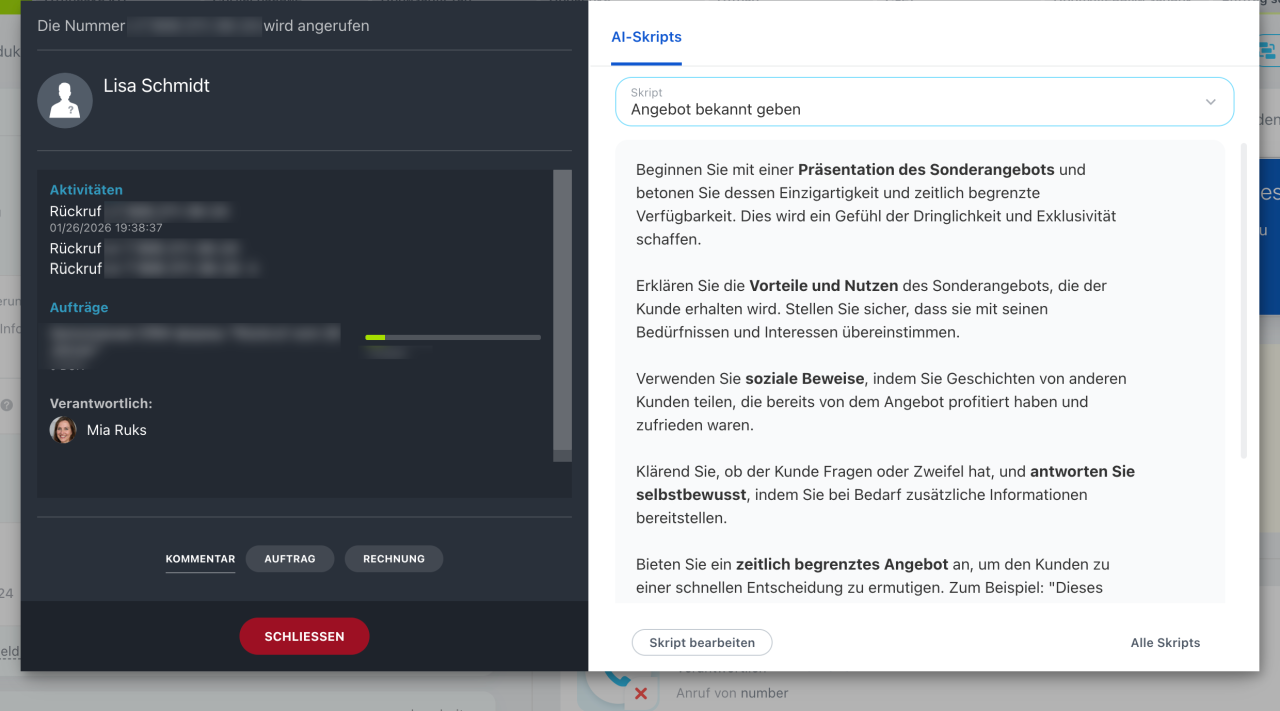 AI-Sprachanalyse und Verkaufsskripts im CRM