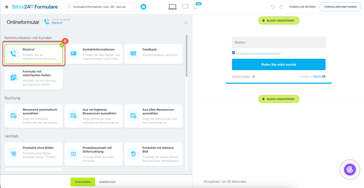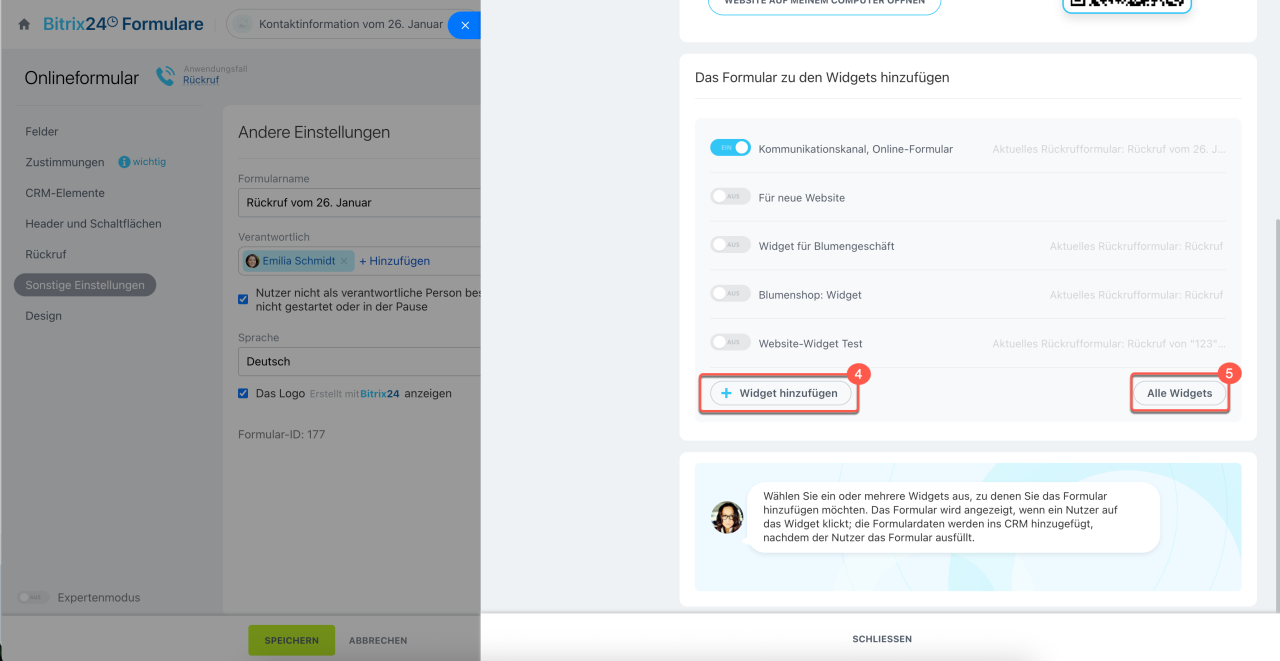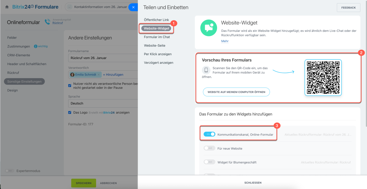 - es auf Ihrer Website oder in Bitrix24 veröffentlichen und
