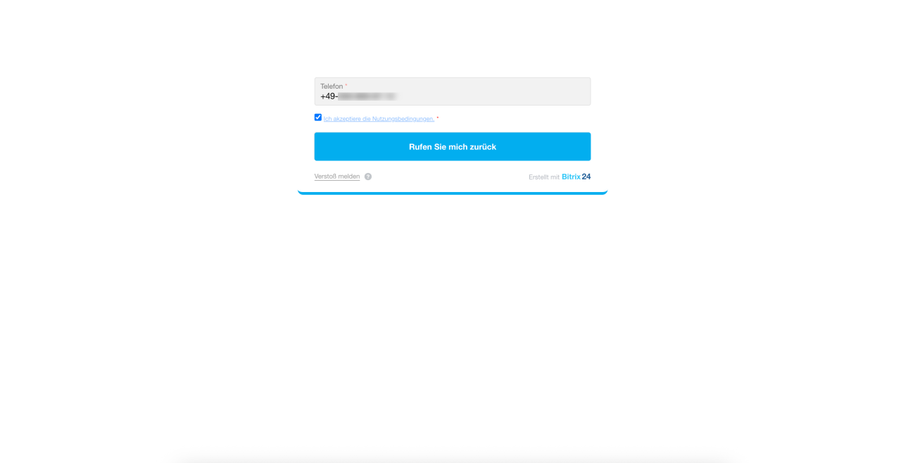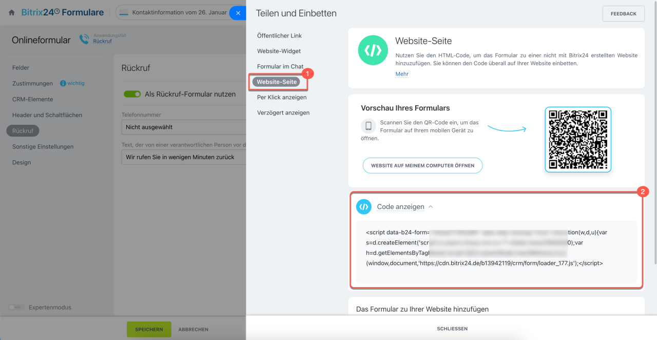 Auf einer Website-Seite: Um das Rückruf-Formular auf einer externen Website einzubinden, nutzen Sie den bereitgestellten HTML-Code. Sie können diesen Code an jeder gewünschten Stelle Ihrer Website einfügen.