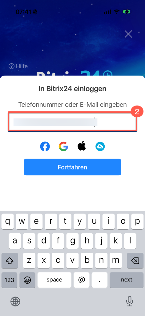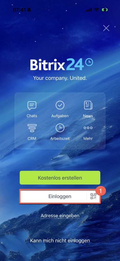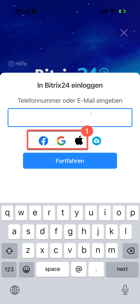 Anmeldemöglichkeiten in der mobilen App von Bitrix24