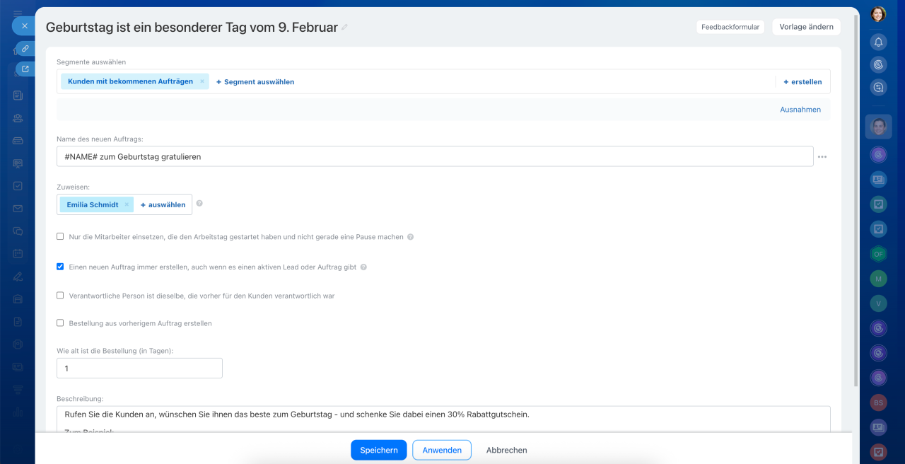 Das Tool Umsatzsteigerung ermöglicht die automatische Erstellung von wiederkehrenden Leads und Aufträgen. Es ist einfach einzurichten und hilft Ihnen, Ihren Umsatz kontinuierlich zu steigern.