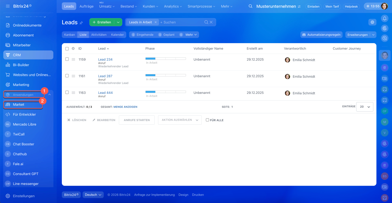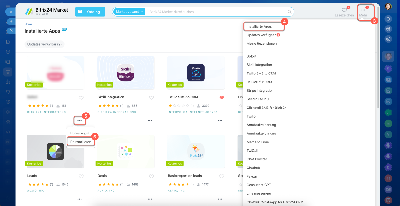 2. Telefonie-Apps aus dem Bitrix24.Market deinstallieren