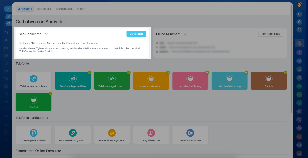 1. Telefonie über SIP-Connector verbinden