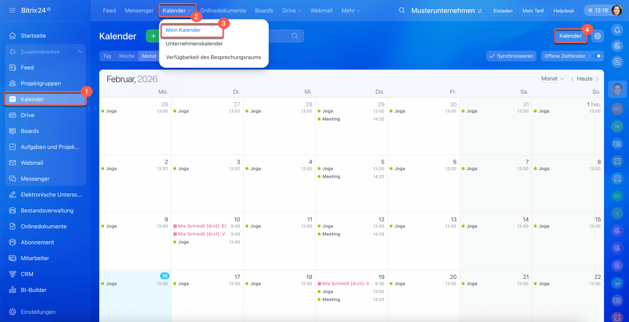 Die Integration von Kalendern in externe Anwendungen ist besonders nützlich, wenn Sie Termine und Ereignisse zentral verwalten möchten – sei es für die Zusammenarbeit im Team oder die persönliche Organisation. Bitrix24 bietet die Möglichkeit, Kalender im iCal-Format zu exportieren, sodass Sie Ihre Termine in anderen Programmen wie Google Kalender, Outlook oder Apple Kalender anzeigen und verwalten können. Der Export ist einfach und erfordert nur wenige Schritte.