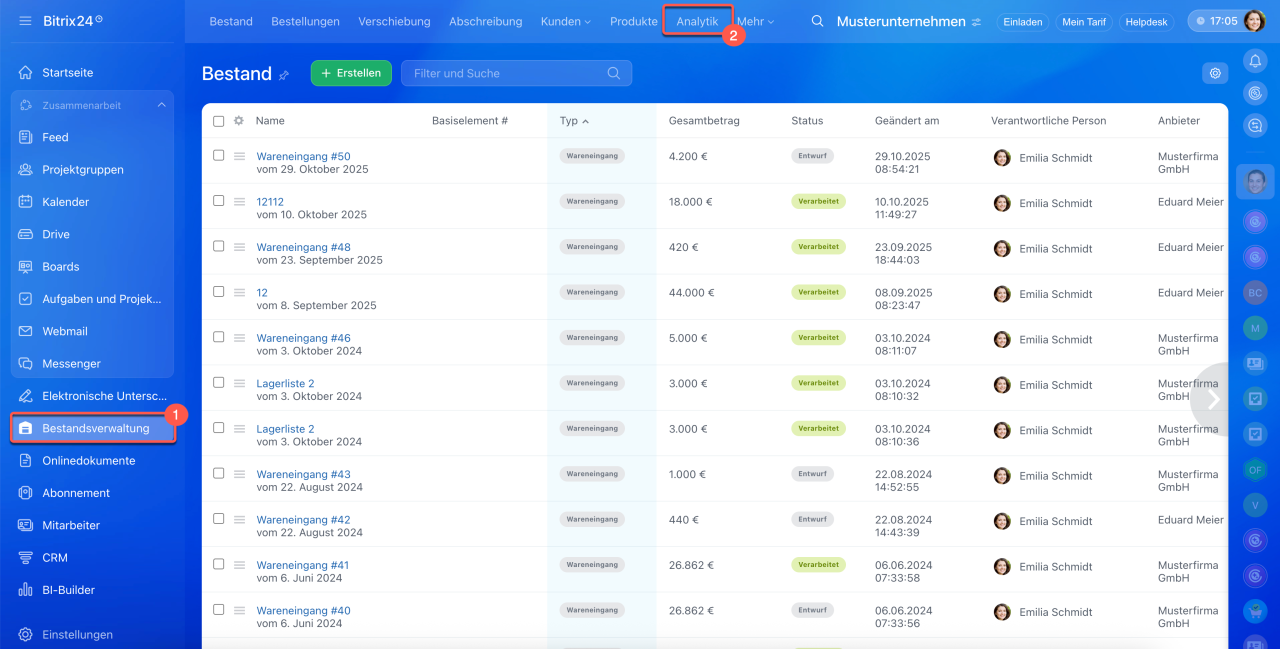 1–2. Gehen Sie auf Bestandsverwaltung > Analytik.