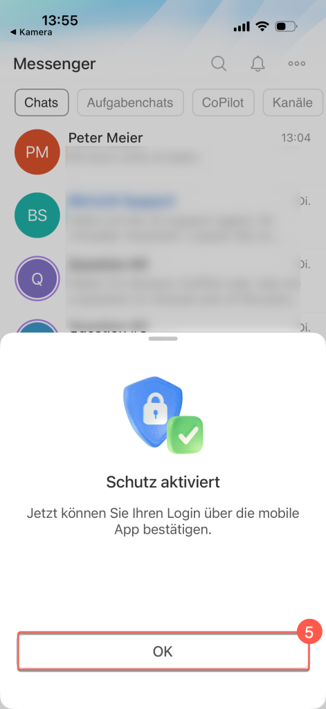 5. Klicken Sie in der mobilen App auf Ok – damit ist der Schutz aktiviert.