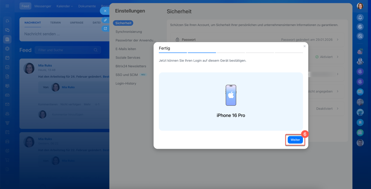 6. Klicken Sie in Bitrix24 auf dem Computer auf Weiter.