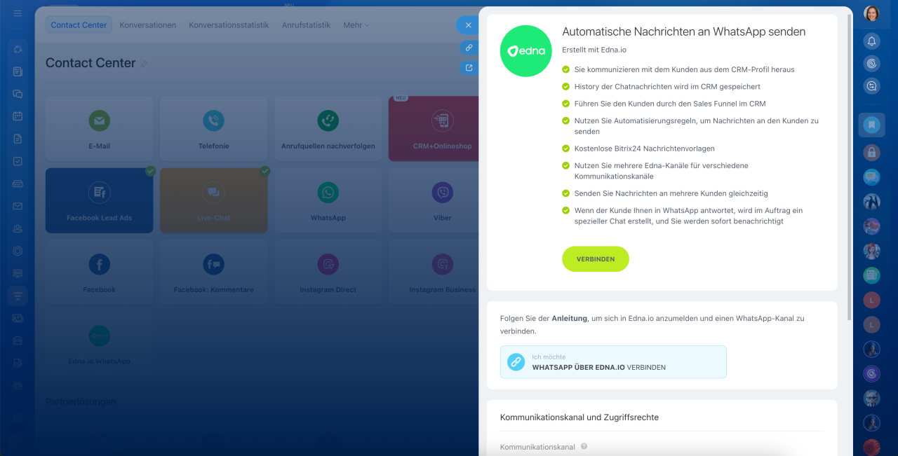 So bleibt die komplette Kundenkommunikation in Bitrix24 erhalten und geht nicht zwischen verschiedenen Diensten verloren.