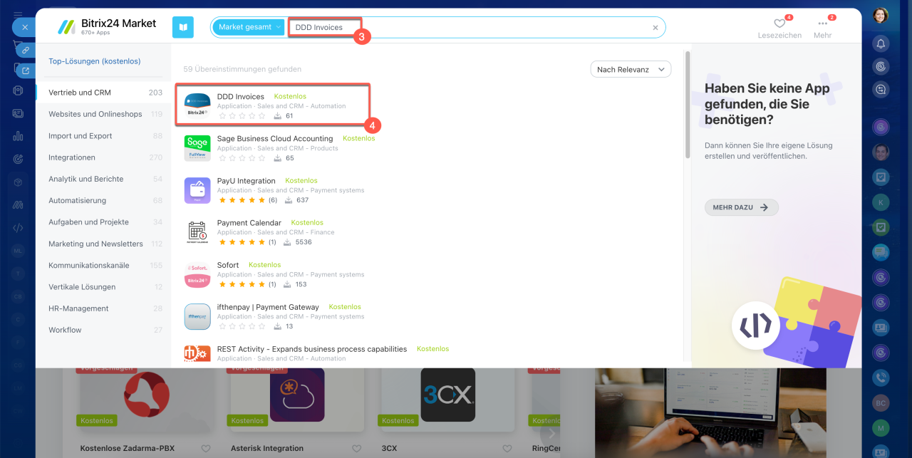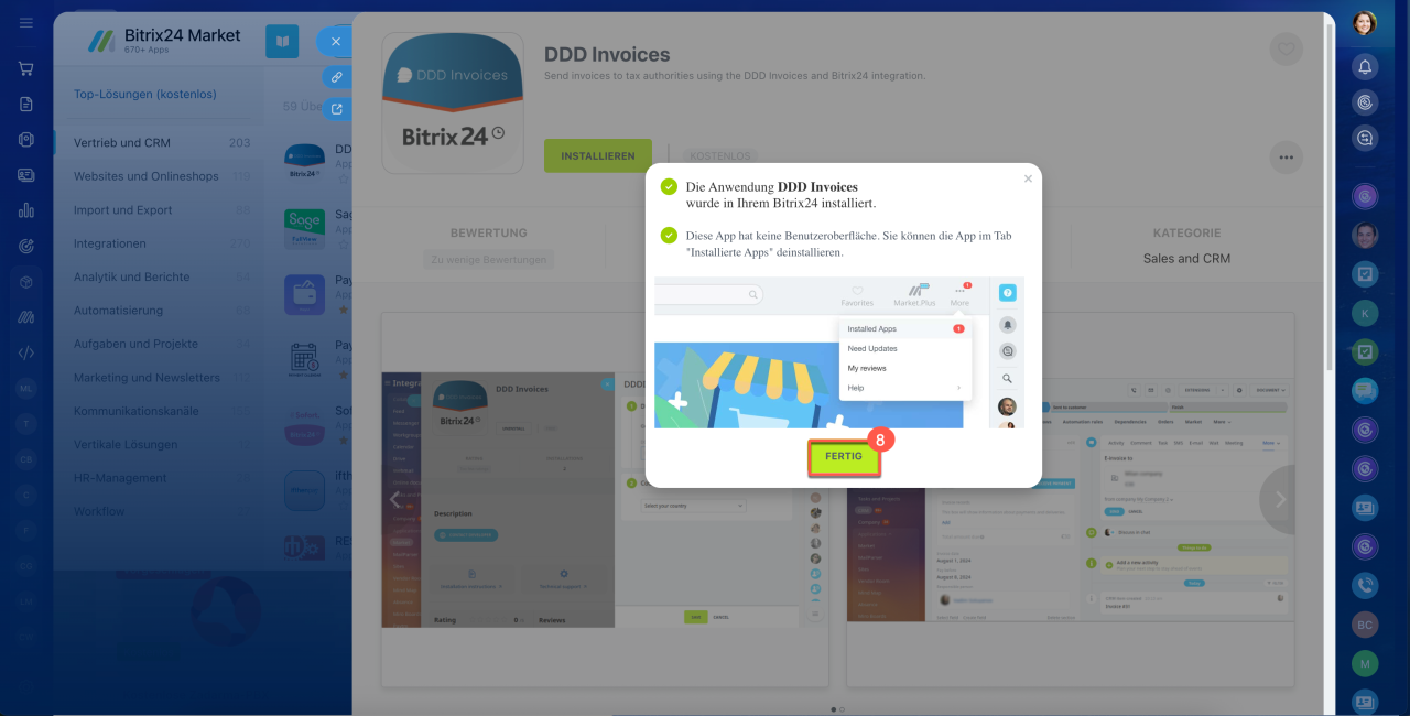 Um zu beginnen, installieren Sie die Anwendung „DDD Invoices“ aus dem Bitrix24 Market.