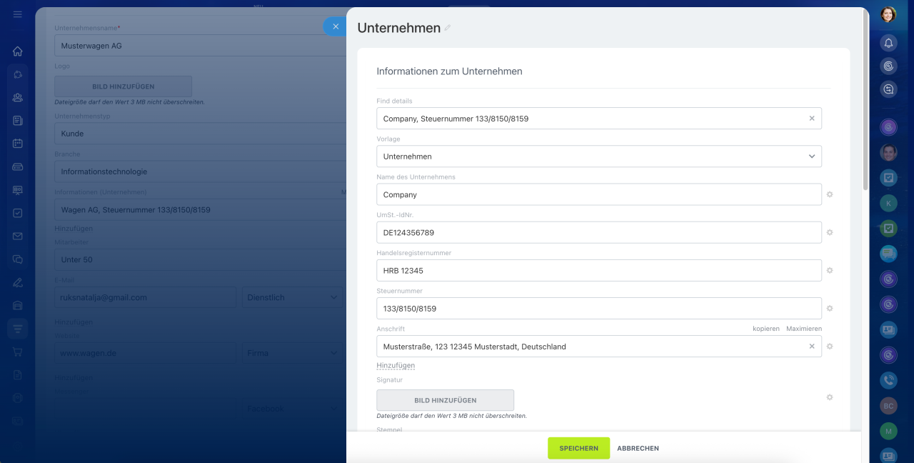 Detaillierte Informationen Ihres Unternehmens verwenden