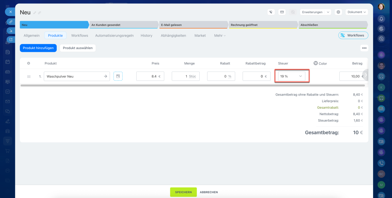 Steuern im CRM hinzufügen und konfigurieren