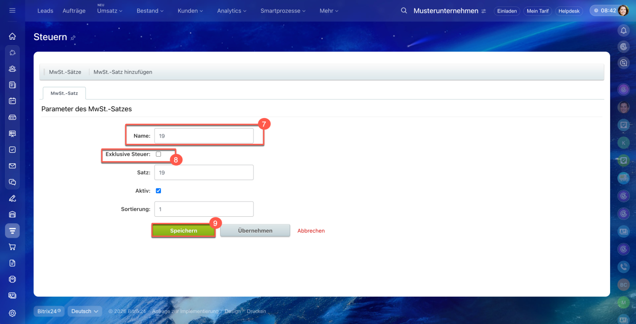 Jetzt können Sie den Steuersatz in Bitrix24 erstellen: