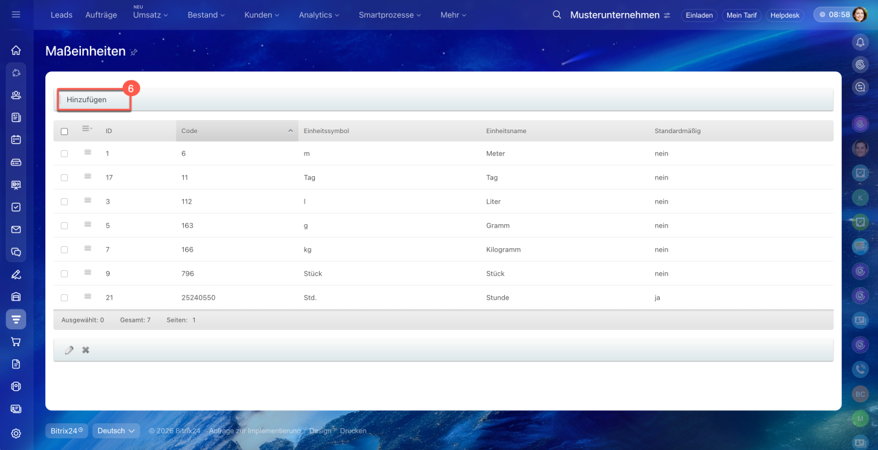 Erstellen Sie alle benötigten Maßeinheiten ein.