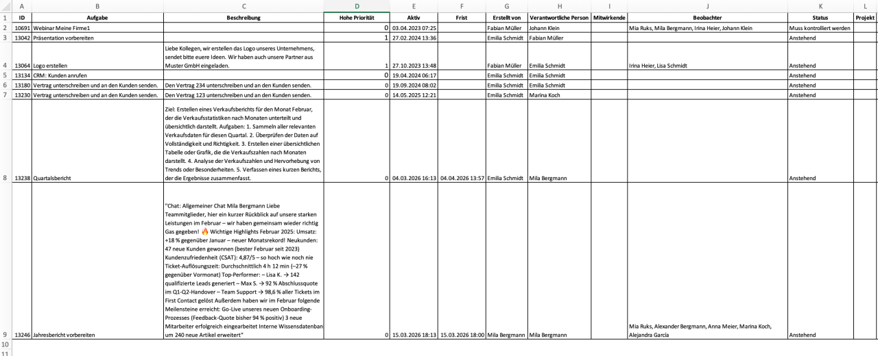 - Aufgaben aus Excel oder einer anderen Tabelle zu übertragen,