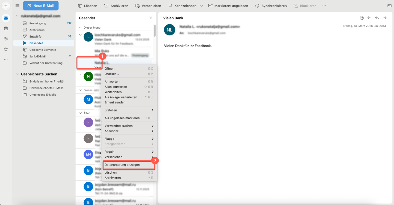 1. Klicken Sie mit der rechten Maustaste auf die benötigte E-Mail.