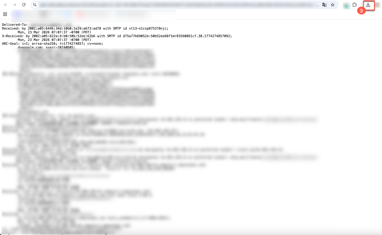 2. Wählen Sie Unformatierte Nachricht anzeigen. Die Nachricht wird in einem neuen Fenster geöffnet.