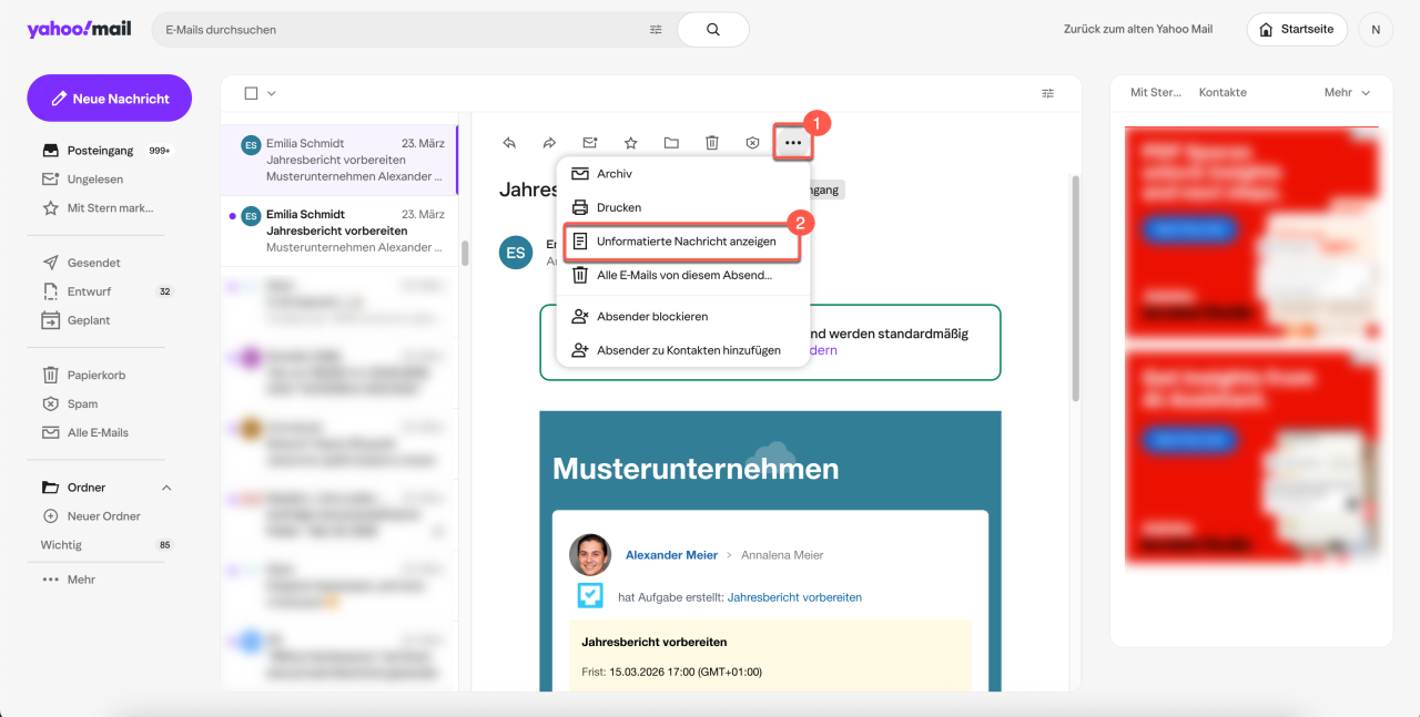 Yahoo! Öffnen Sie Ihr Postfach und die gewünschte E-Mail.