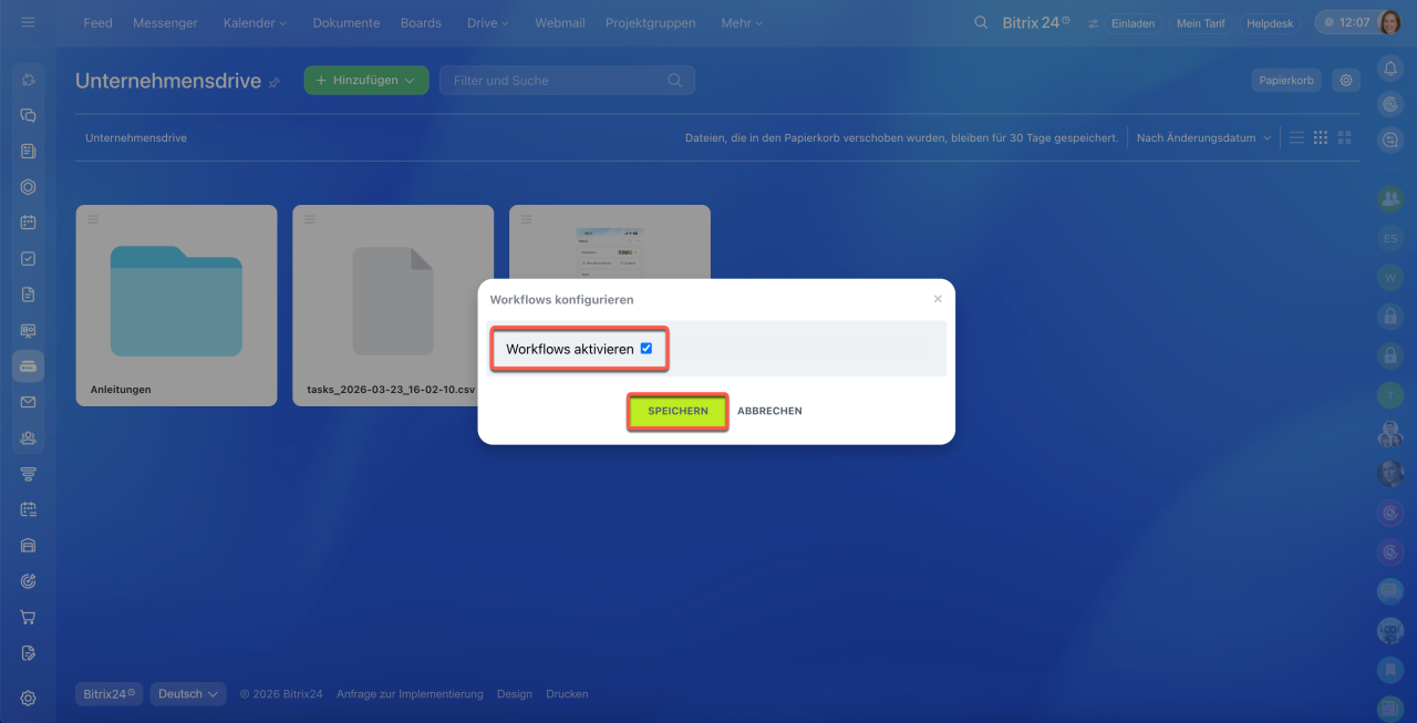Arbeit mit Dateien und Ordnern auf dem Bitrix24 Drive