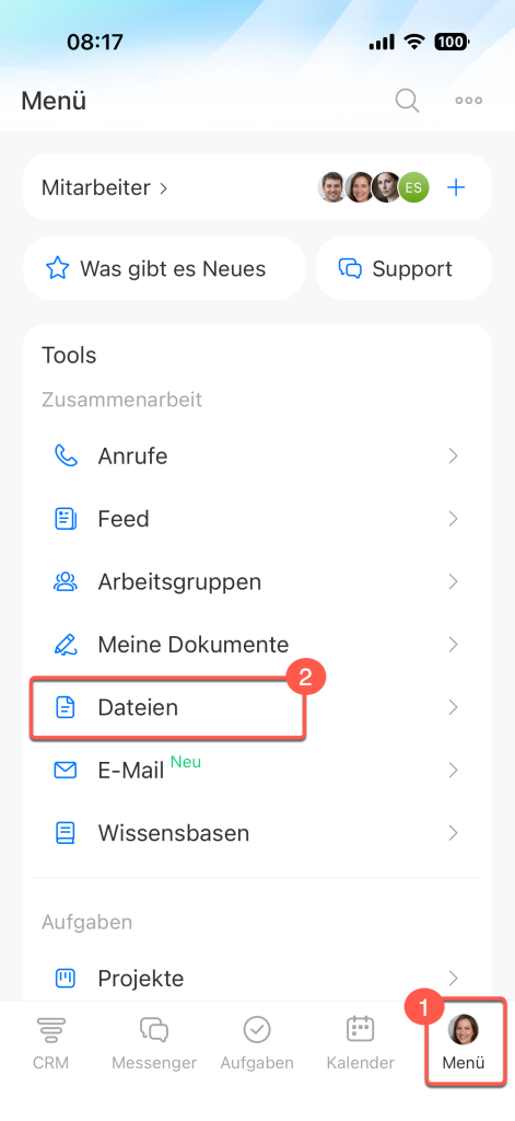 Der Unternehmensdrive ist sowohl auf dem Computer als auch in der mobilen App von Bitrix24 verfügbar.