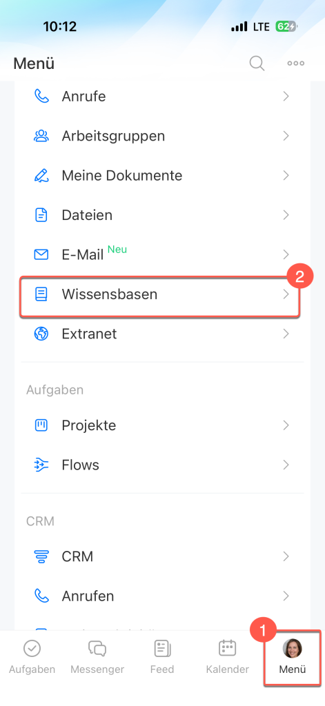 Alle Wissensbasen des Unternehmens sind im Bereich Wissensbasis zusammengefasst – dieser ist sowohl in der Desktop-Version als auch in der mobilen Bitrix24-App verfügbar.