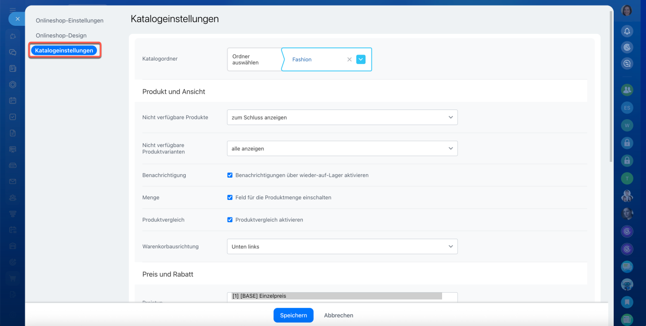 Nach den allgemeinen Einstellungen können Sie den Produktkatalog anpassen. Der Katalog ist die Seite des Onlineshops, auf der Kunden die Produkte auswählen können. Hier legen Sie fest, welche Produkte auf der Website angezeigt werden und wie sie präsentiert werden.