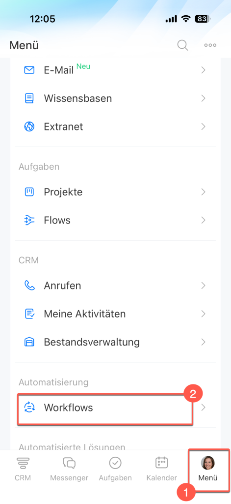 Öffnen Sie den Bereich Menü > Workflows.