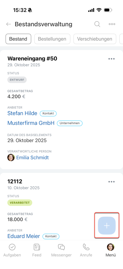 Um die Information zum Lagerbestand zu aktualisieren, buchen Sie das Dokument.